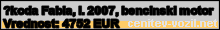 Vrednost vozila: Škoda Fabia, letnik 2007, bencinski motor