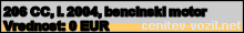 Vrednost vozila: 206 CC, letnik 2004, bencinski motor