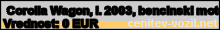 Vrednost vozila: Corolla Wagon, letnik 2003, bencinski motor