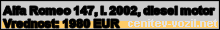 Vrednost vozila: Alfa Romeo 147, letnik 2002, diesel motor