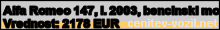 Vrednost vozila: Alfa Romeo 147, letnik 2003, bencinski motor