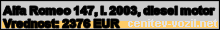 Vrednost vozila: Alfa Romeo 147, letnik 2003, diesel motor