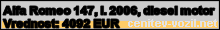 Vrednost vozila: Alfa Romeo 147, letnik 2006, diesel motor