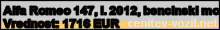 Vrednost vozila: Alfa Romeo 147, letnik 2012, bencinski motor