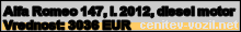 Vrednost vozila: Alfa Romeo 147, letnik 2012, diesel motor