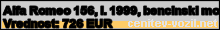 Vrednost vozila: Alfa Romeo 156, letnik 1999, bencinski motor