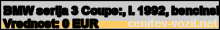 Vrednost vozila: BMW serija 3 Coupe:, letnik 1992, bencinski motor