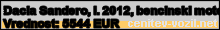 Vrednost vozila: Dacia Sandero, letnik 2012, bencinski motor