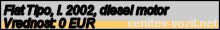 Vrednost vozila: Fiat Tipo, letnik 2002, diesel motor