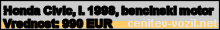 Vrednost vozila: Honda Civic, letnik 1998, bencinski motor