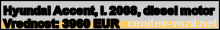Vrednost vozila: Hyundai Accent, letnik 2008, diesel motor