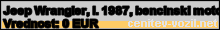 Vrednost vozila: Jeep Wrangler, letnik 1987, bencinski motor