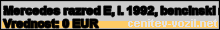 Vrednost vozila: Mercedes razred E, letnik 1992, bencinski motor