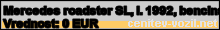 Vrednost vozila: Mercedes roadster SL, letnik 1992, bencinski motor