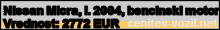 Vrednost vozila: Nissan Micra, letnik 2004, bencinski motor
