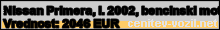Vrednost vozila: Nissan Primera, letnik 2002, bencinski motor