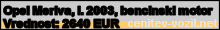 Vrednost vozila: Opel Meriva, letnik 2003, bencinski motor