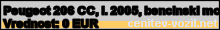 Vrednost vozila: Peugeot 206 CC, letnik 2005, bencinski motor