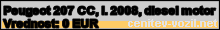 Vrednost vozila: Peugeot 207 CC, letnik 2008, diesel motor