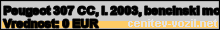 Vrednost vozila: Peugeot 307 CC, letnik 2003, bencinski motor