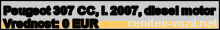Vrednost vozila: Peugeot 307 CC, letnik 2007, diesel motor