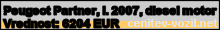 Vrednost vozila: Peugeot Partner, letnik 2007, diesel motor
