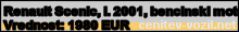 Vrednost vozila: Renault Scenic, letnik 2001, bencinski motor
