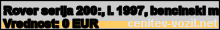 Vrednost vozila: Rover serija 200:, letnik 1997, bencinski motor