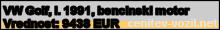 Vrednost vozila: VW Golf, letnik 1991, bencinski motor