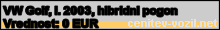 Vrednost vozila: VW Golf, letnik 2003, hibridni pogon