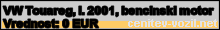 Vrednost vozila: VW Touareg, letnik 2001, bencinski motor